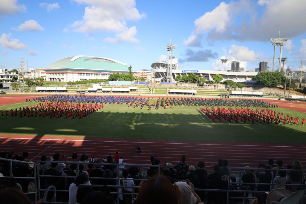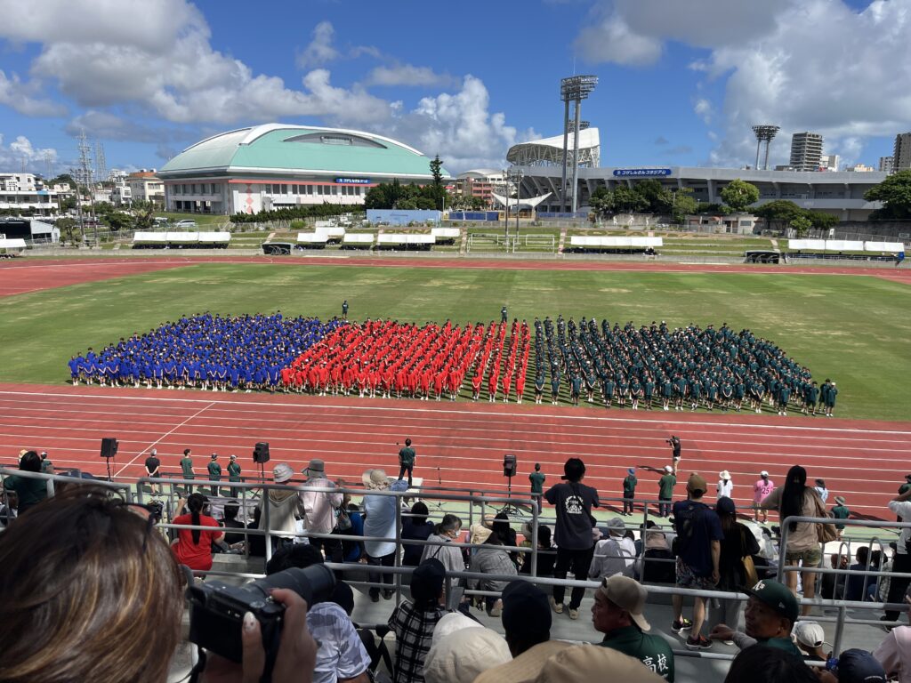 僕は現場監理(管理)もさることながら、事務作業にも慌ただしく取り組んでおります(^_^;) そのなかで先日、長女が通う高校の体育祭があり、時間を作って参加することができました。長女が通う学校は学年が9組まであるマンモス校。生徒全員では1,000名にもなるそうで、校内の運動場では開催が難しいことから、沖縄市陸上競技場で行われました。
