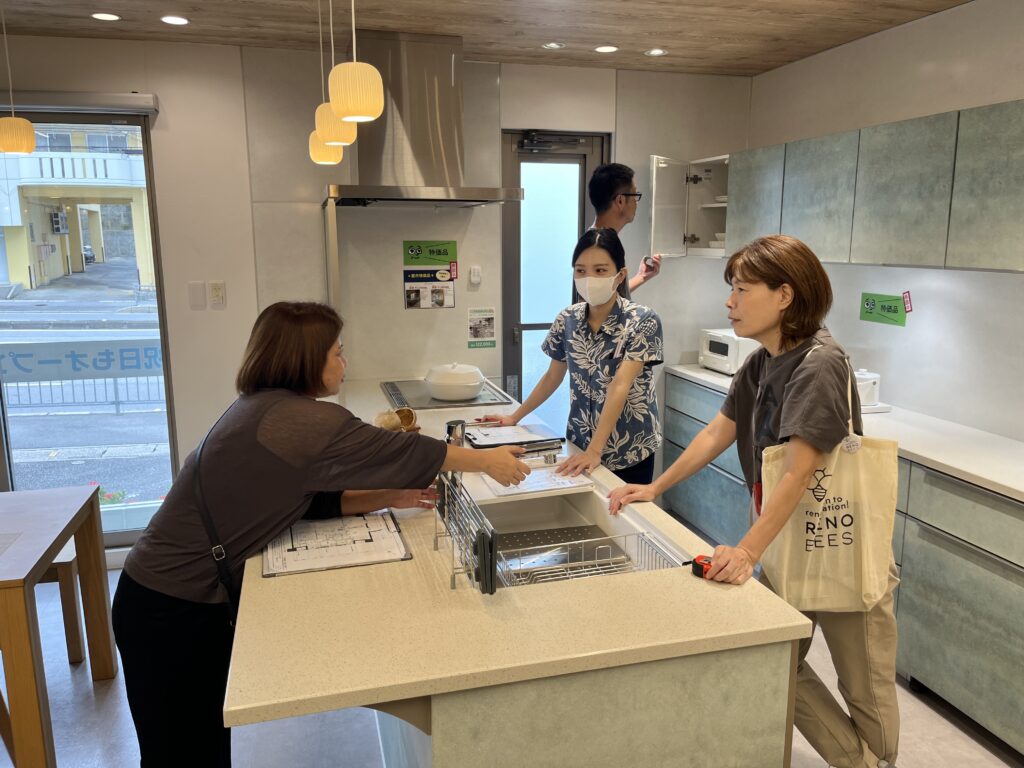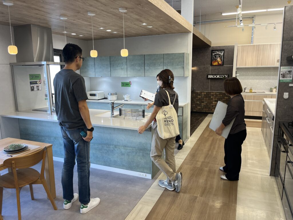 さて、RENOBEESはといいますと、前回、ブログにUPしたこれから始まる戸建て案件以外にもマンション案件も着々と進んでます。その施主様と先日、タカラスタンダードのショールームに同行し、キッチンの確認に行きましたよ\(^o^)/