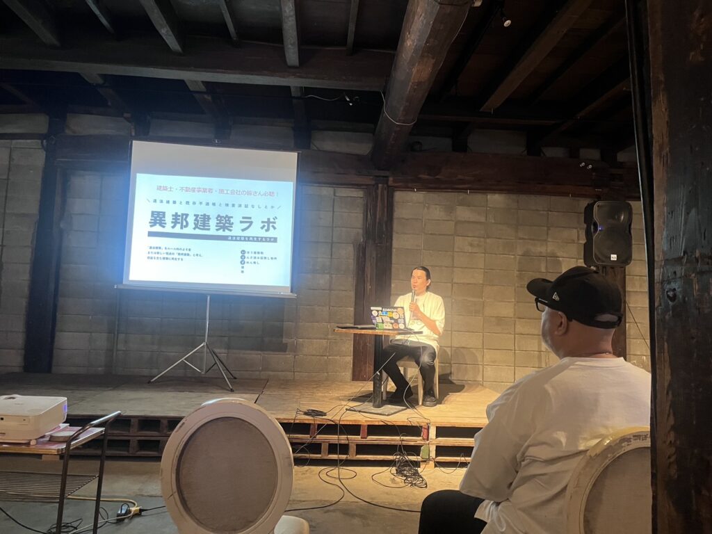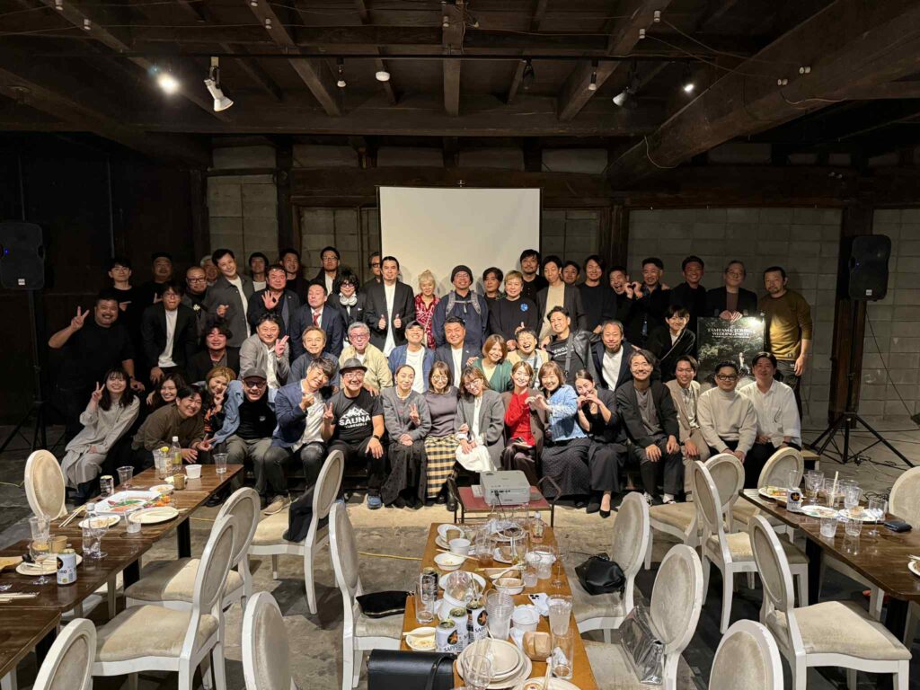 そんな毎日が続いているなか、先日、県外のリノベ仲間の結婚式があり、1泊2日の弾丸出張で熊本に行ってきました。今回、ご結婚されたのは今や日本のリノベ界のトッププレイヤ―となったタムタムデザインの田村 晟一郎さんと、同じ事務所でデザインを担当している本田 富子さん。以前からお二人とは仲良くさせてもらってましたが、今回、めでたく入籍されたとのこと。主催者で友人の中川さん(熊本で活躍しているリノベ会社ASTER代表)から11月8日に行われる熊本リノベフェスのあとに、タムさんの結婚パーティーを企画したいと連絡がありましたが、結婚式はサプライズで行いたいので参加してもらえないかという相談があり、「翌日には沖縄戻るけど、参加します」ということで束の間でしたが、お祝いを直接伝えることができました。その様子がコチラ。