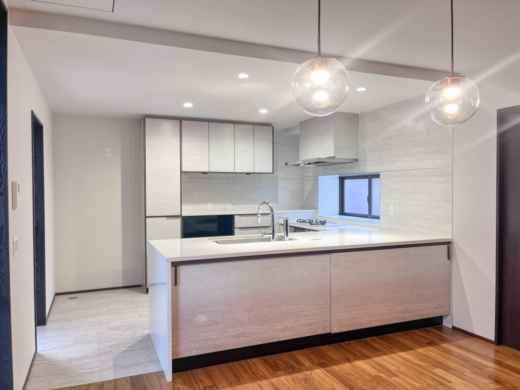 また、別の現場もキッチンが設置され、いよいよ完成が見えてきています。こちらもトーンを揃えながら、色や素材を組み合わせた空間。どの現場もそうですが、モニター上では再現しきれない色のニュアンスが本当に悔しいくらい!実際に見ると絶妙なカラーバランスなんです。どうやったらお客様のイメージ通りになるか、どうやったらこの人らしい空間になるのか、そんなことを何度も考えながら進めてきました。