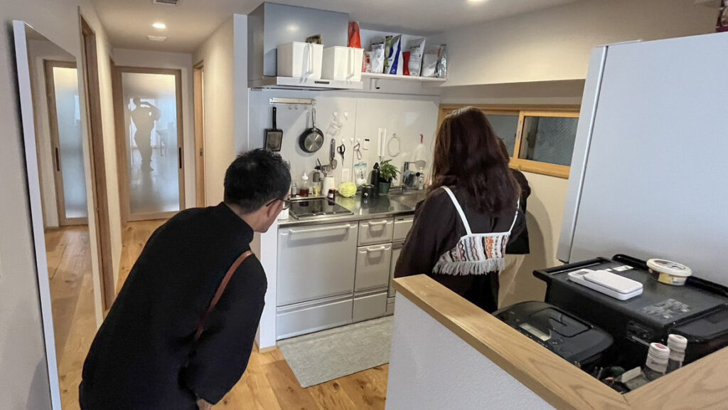 年末のお客様との打ち合わせで、フローリング材の選定に悩まれている場面がありました。そのときふと、「あ、これは実際に使用してるうちを見てもらったほうが早いな」と思って、「今度、うちに来ませんか?」と軽く言ってみたんです。すると「え〜、それはさすがに迷惑じゃないですか。でも…見たい気持ちはあります」と。年末年始休暇で家を片付ける予定だったし、家がきれいになるきっかけにもなるし、ぜひ!と、一気に見学会開催が決まりました。以前からリアル見学会をやりたいことは、トクザトにも話していて、今回たまたま条件がそろったタイミングで一気に話がすすみましたが、思い立った時に動けるこういう流れもRENOBEESらしいなと感じました!勢いも大事!