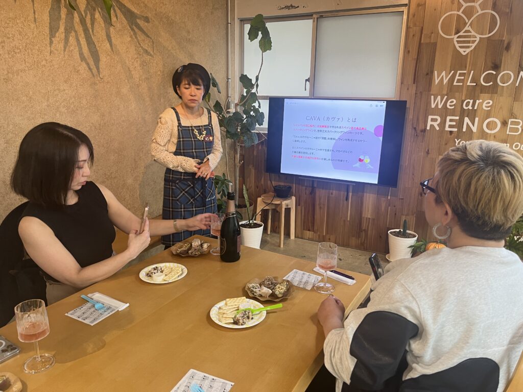 おつまみもたくさん用意され、RENOBEESヨナハが作った①さつまいも(ブルーチーズ、ナッツ、はちみつ乗せ) RENOBEESカデカルが作った②ハーブ香る低温調理のツナ3種 そして首藤さんセレクトの③ミニカマンベールチーズ ④豚のテリーヌ ⑤ドライフルーツとナッツ入りのクリームチーズ ⑤クラッカーと本当に盛りだくさんの食事もいただきました!(座学も聞けてこの内容で¥3,300-は本当に安すぎ( ゚Д゚))