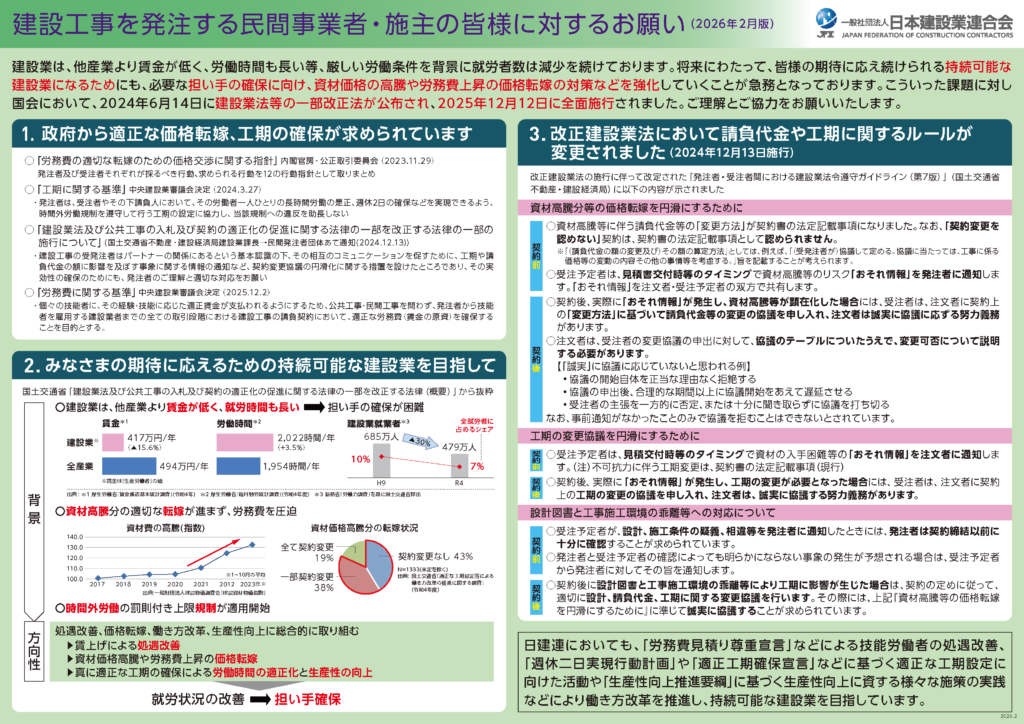 ここまで読むと少し不安に感じるかもしれませんが、余裕を持ったスケジュールと、状況に応じて柔軟に調整できる関係性があれば、安心して進めていくことができます。ガイドラインでも、資材の高騰や納期遅れがあった場合は、契約後であっても協議のうえ変更し、お互いにきちんと話し合いながら進めていくことが前提とされていて、最初の金額や工期が絶対といえる時代ではないため、変動の可能性は事前にしっかり共有するようにしています。