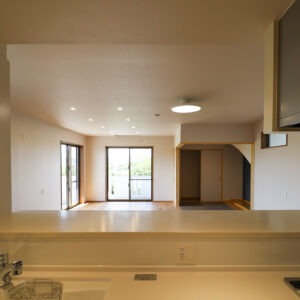 新たに計画した住まいは、キッチンを中心にリビング全体を見渡せるレイアウト。
