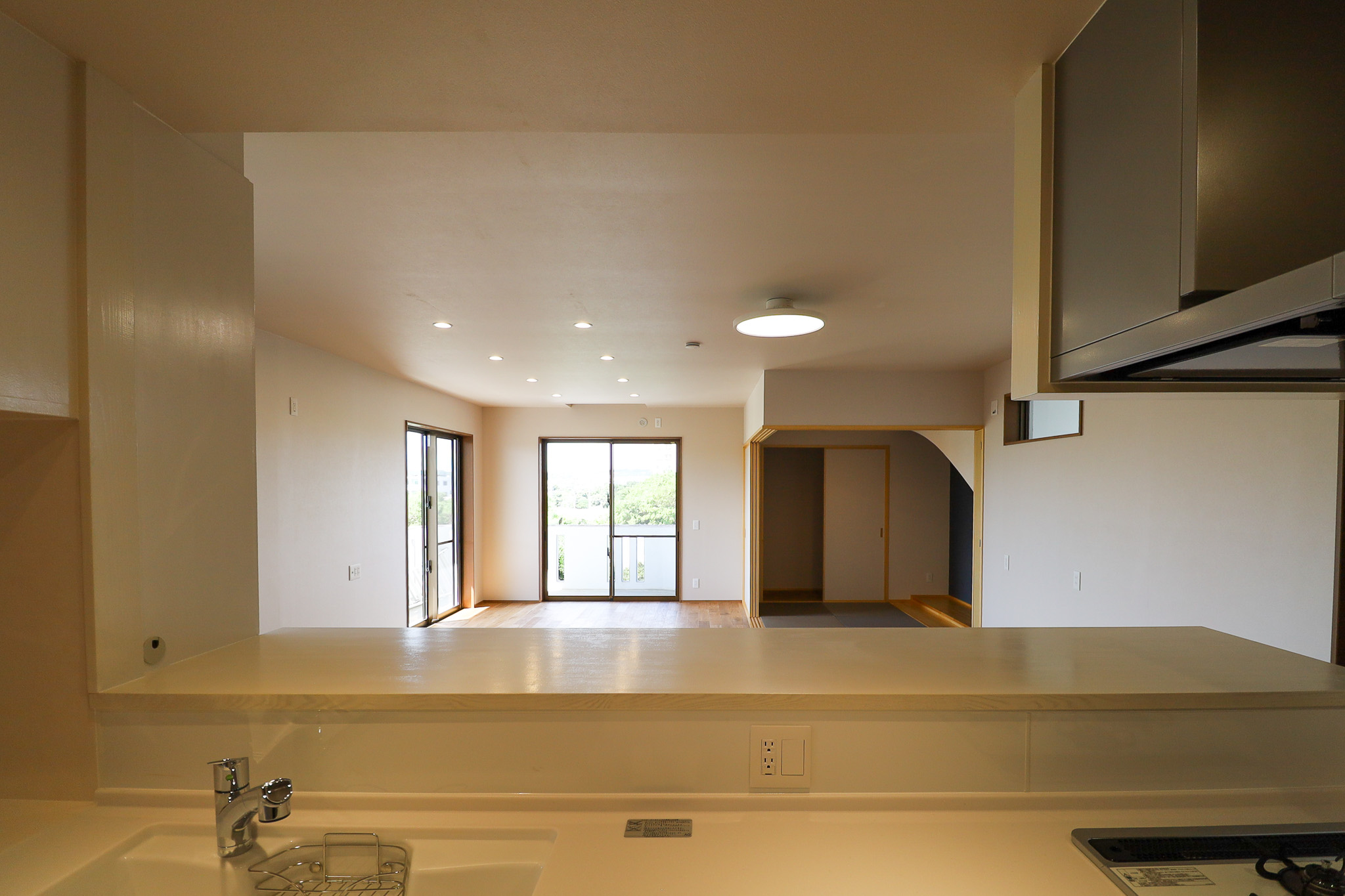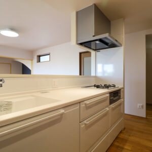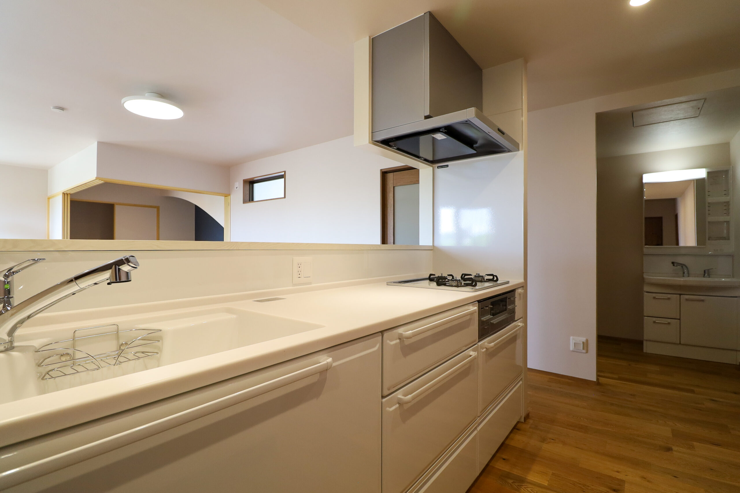 日常の動きに自然と視線が通る、シンプルで使いやすい空間としました。